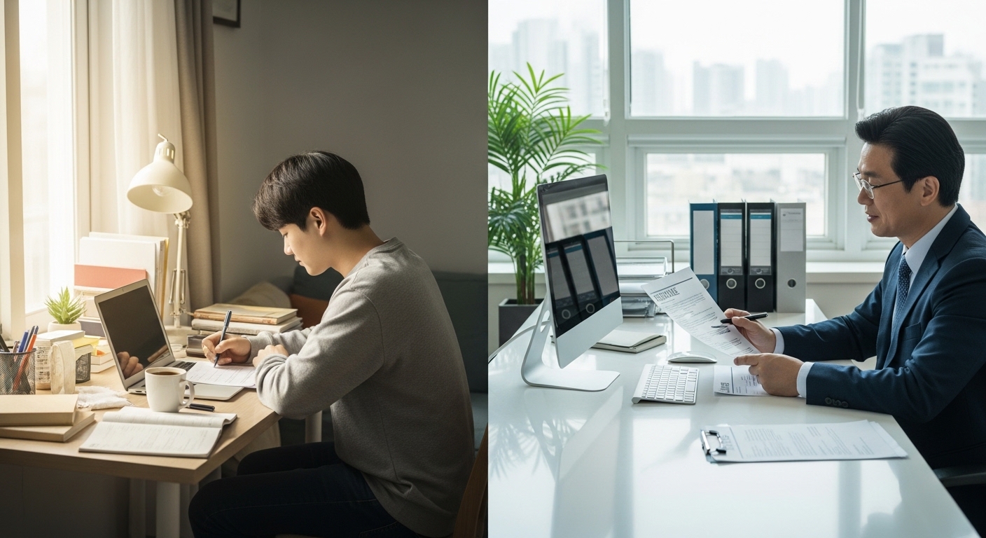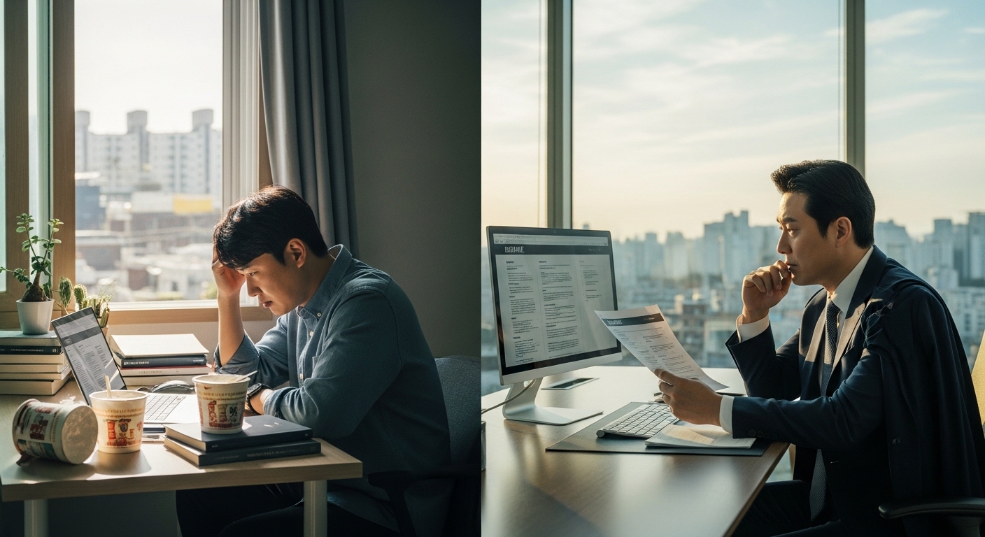 | 핵심 강조점 | 잠재력, 학습 의지, 대외 활동 | 전문성, 직무 성과, 문제 해결 능력 |