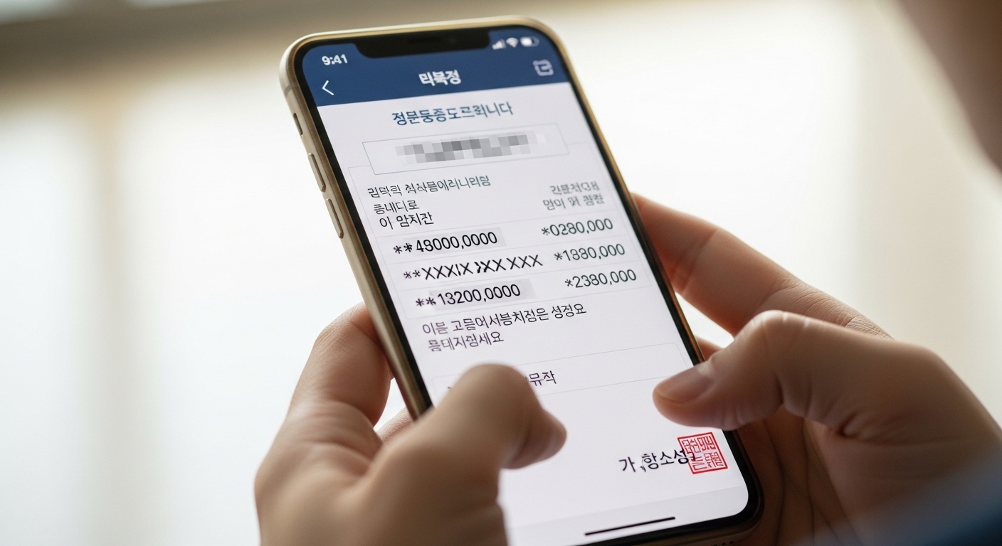 | 임시 파일 관리 | 이미지로 저장한 확인증은 사용 후 즉시 삭제하거나 보안 폴더에 저장하여 타인에게 노출되지 않도록 주의하십시오. |